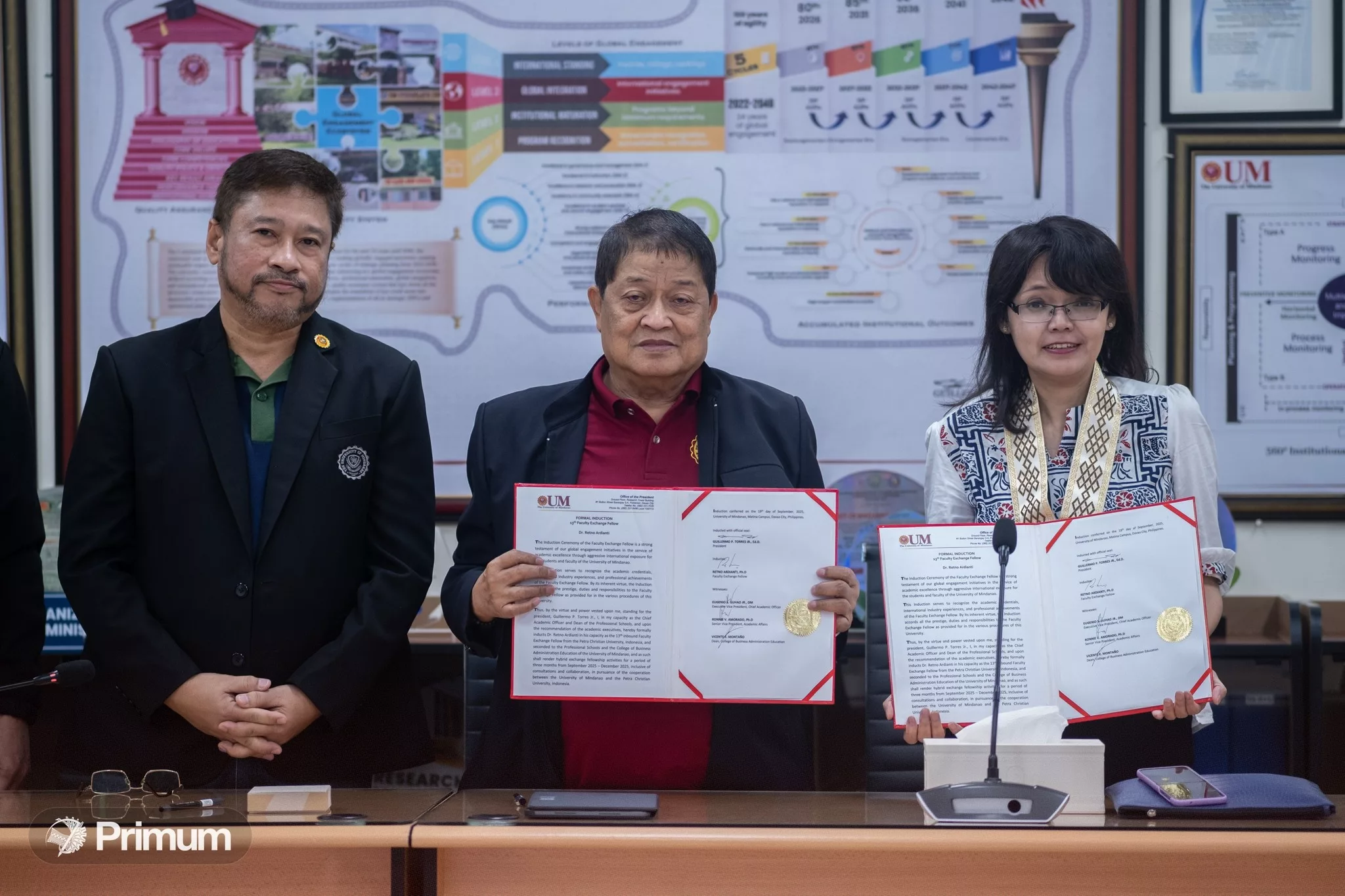 Expanding its global connections, the University of Mindanao (UM) reinforced its internationalization efforts on September 19, 2025 at the DPT Conference Hall with the formal induction of the institution’s 13th inbound faculty exchange scholar, Dr. Retno Ardianti, S.Sos.,M.Si., Ph.D., from Petra Christian University, Indonesia.